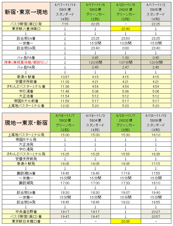 上高地行 バスタ新宿発 高速路線バスさわやか信州号 予約サイト